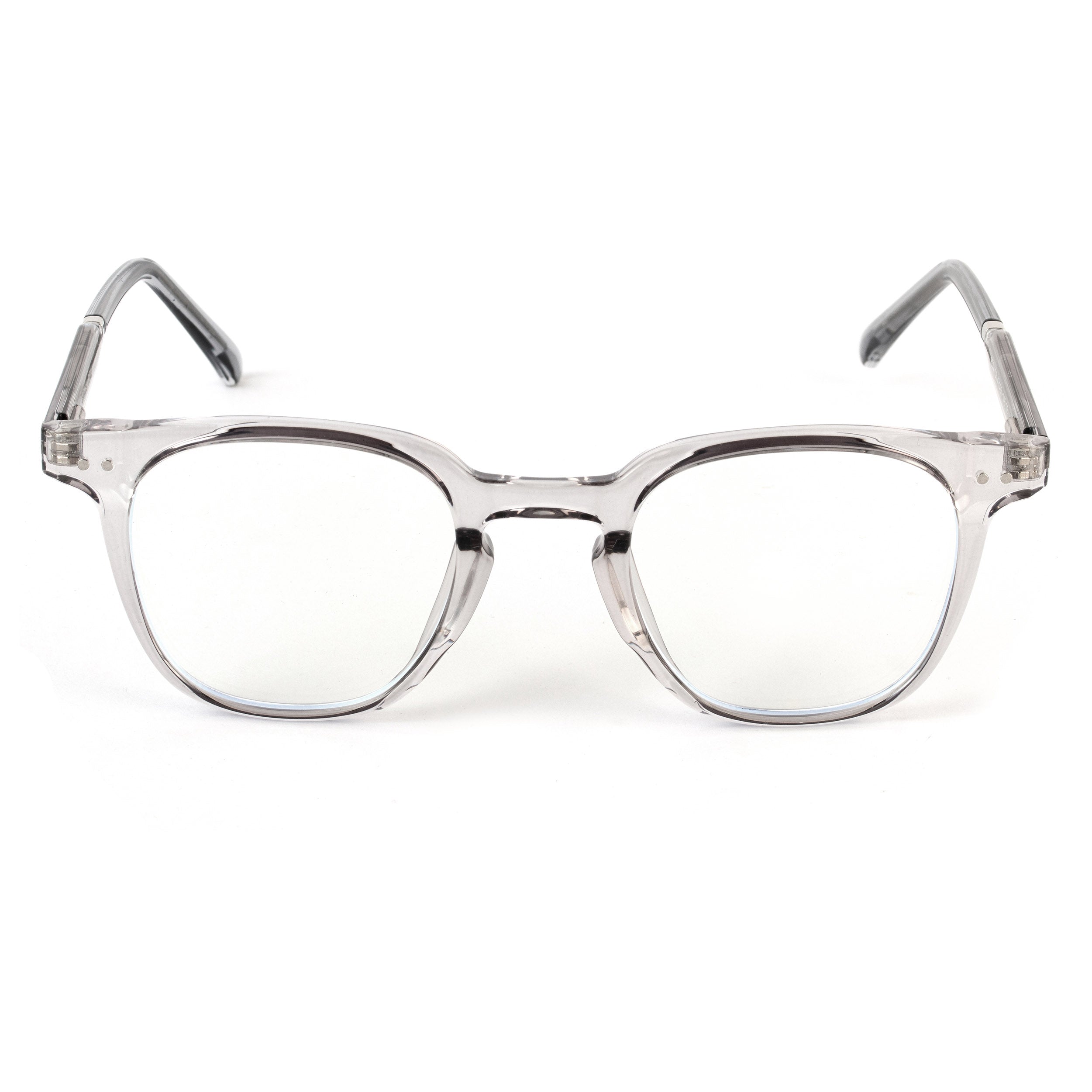 【About Frame and Temple】:- Material : Polycarbonate/Plastic | Type : Square | Color : Grey/Transparent | Lightweight : Yes | Temple Spring : Yes. These Blue Light Blocking Glasses Are Made Of Reinforced Plastic Frames. All The Details Ensuring You A Perfect Performance. It Reduce The Burden On Your Bridge Of The Nose And Create A New Sense Of Fashion.